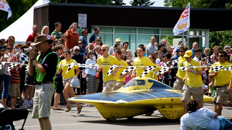 michigan arrivesJuly 22, 2008Michigan was the first team to arrive at the Solar Challenge 2008 finish line, to much cheering and applause. This was the end of a 9 day solar powered race, starting in Dallas and finishing here on campus at UCalgary.