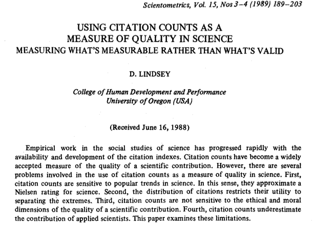 citation count as nielsen rating for scienceOctober 22, 2010that article has 63 citations, as counted by Google Scholar.