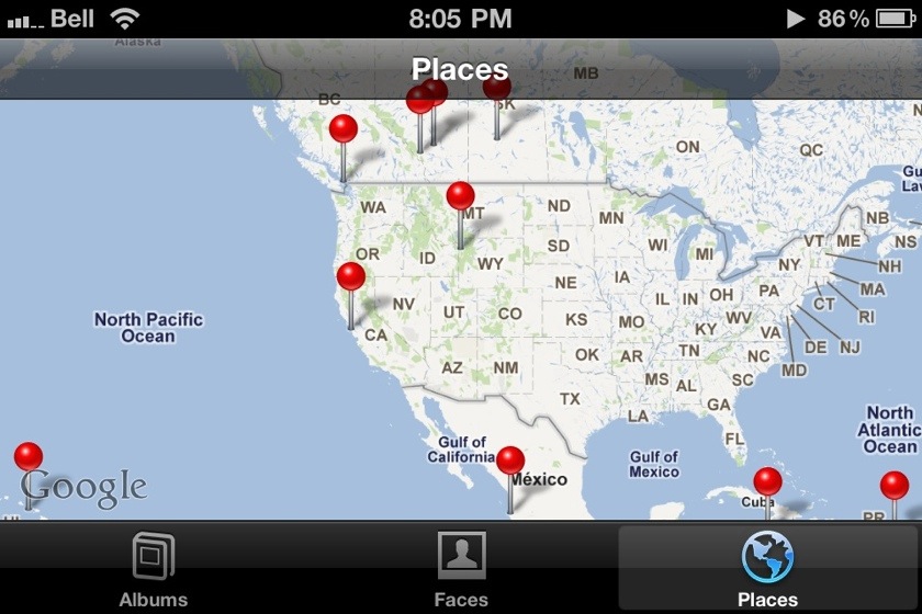 travelsSeptember 6, 2011Pins pulled from geo metadata. Automatic metadata is the only metadata I like.And still no pin on Fredericksburg…