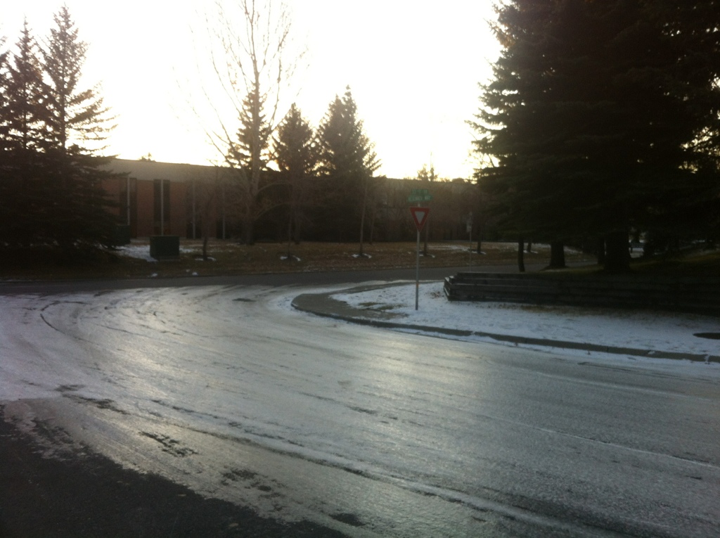 A little icyNovember 7, 2011Still lots of ice on the pathways, and even some of the roads. This one’s a little slick…