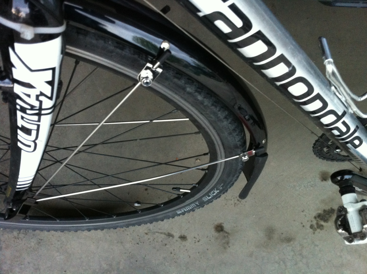 FenderedJune 7, 2012Somewhere, a purist is laughing at me. Whatever. I’ll stay dry(er) and my drivetrain will have less gunk thrown into it.