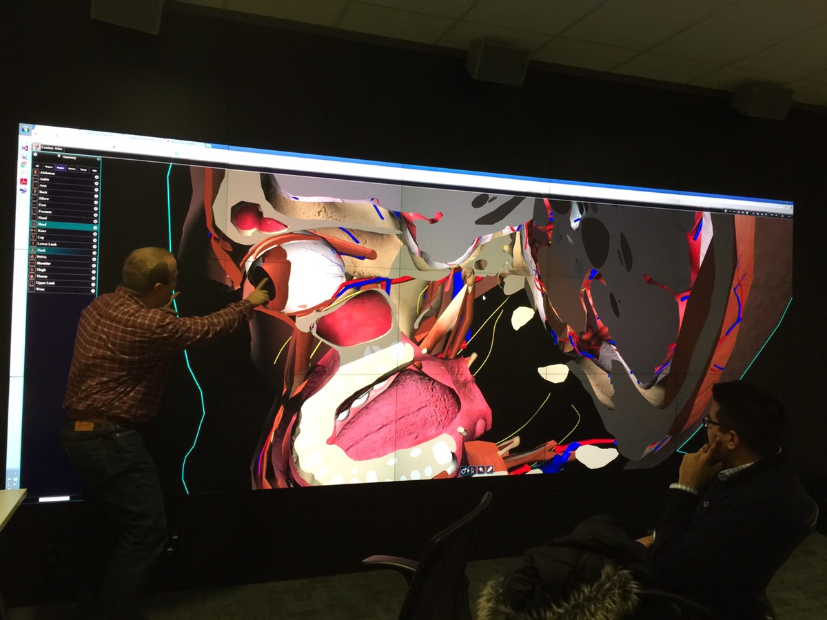 human anatomy in visualization studioDecember 18, 2015The Lindsay Virtual Human software runs great on the giant 34.5 million pixel display wall in the Visualization Studio in the TFDL.