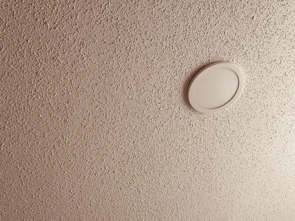 mondayOctober 6, 2025architectureminimalismtexturelightingceilingmondayThe image shows a minimalist and textured ceiling with a small circular light fixture mounted on it, creating a simple and subdued architectural detail.Photo by D'Arcy Norman