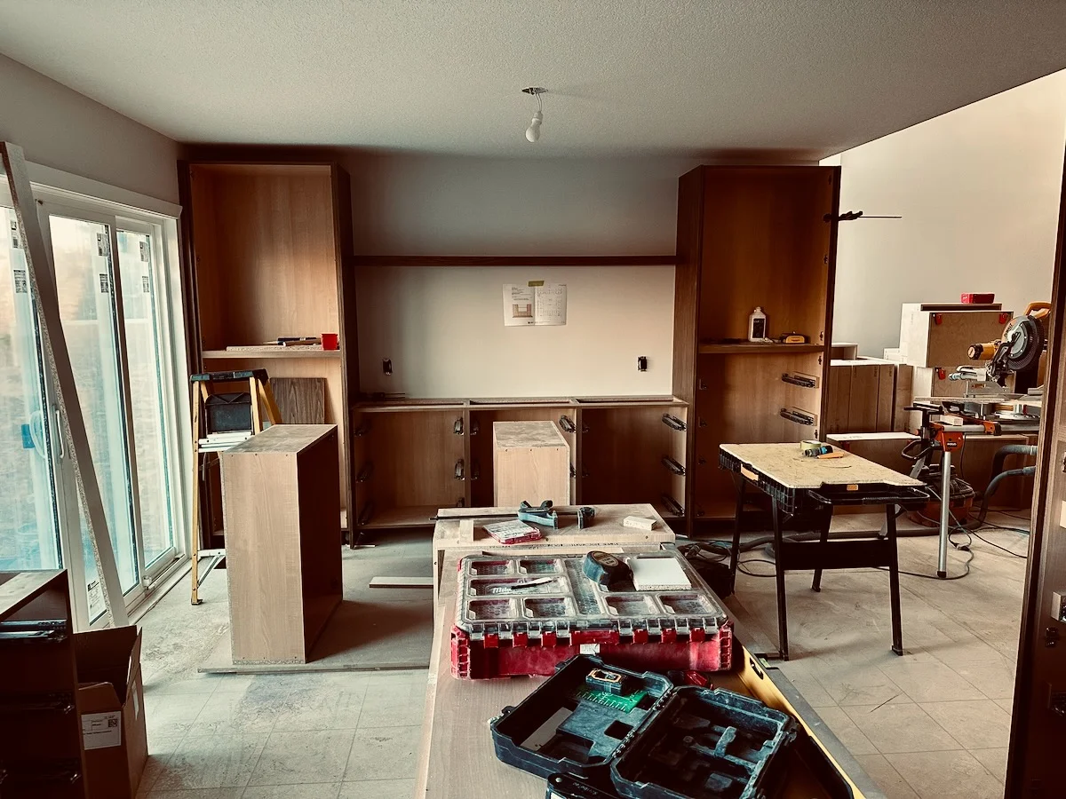 installingOctober 22, 2025installingThe image shows a messy and cluttered room undergoing renovation or remodeling. It contains various power tools, construction materials, and dismantled furniture, suggesting an ongoing project or work in progress.Photo by D'Arcy NormanLast updated: October 22, 2025renovationconstructioninterior designwork in progresstoolsfurniture