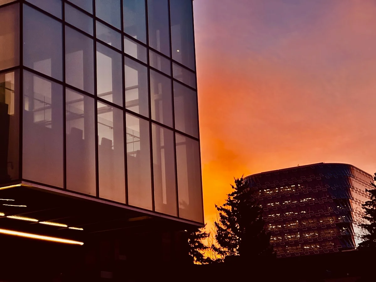 morning light on campusFebruary 3, 2026architectureglasssilhouetteucalgarycampusmorningsunrisemackimmietaylor instituteskymorning light on campusA modern glass and steel building framed against a vibrant orange and purple sunrise sky, with trees silhouetted in the foreground.Photo by D'Arcy Norman