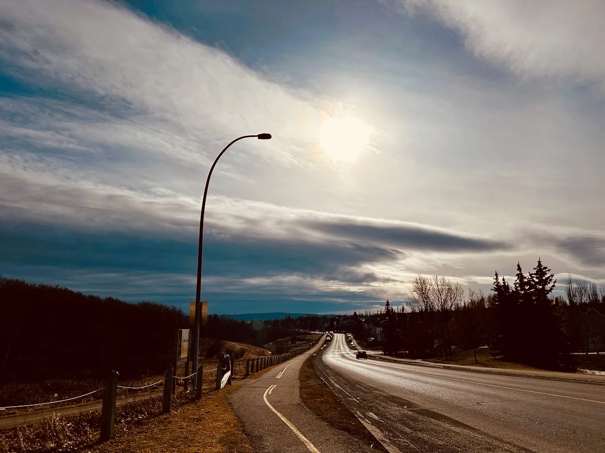 end of false springFebruary 16, 2026roadcloudssilhouetteend of false springA scenic view of a highway winding through a forested area, with a streetlight casting a silhouette against the dramatic sky and setting sun.Photo by D'Arcy Norman