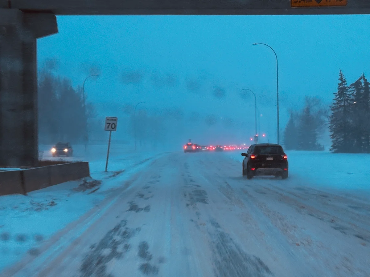 maximum 70February 17, 2026shaganappiwinterroadsnowdrivingsignmaximum 70a very cold and snowy road, covered in ice. a street sign says the speed limit is 70km/h, but traffic ahead is stopped because of the crappy winter conditions.Photo by D'Arcy NormanLast updated: February 17, 2026