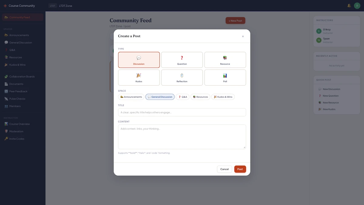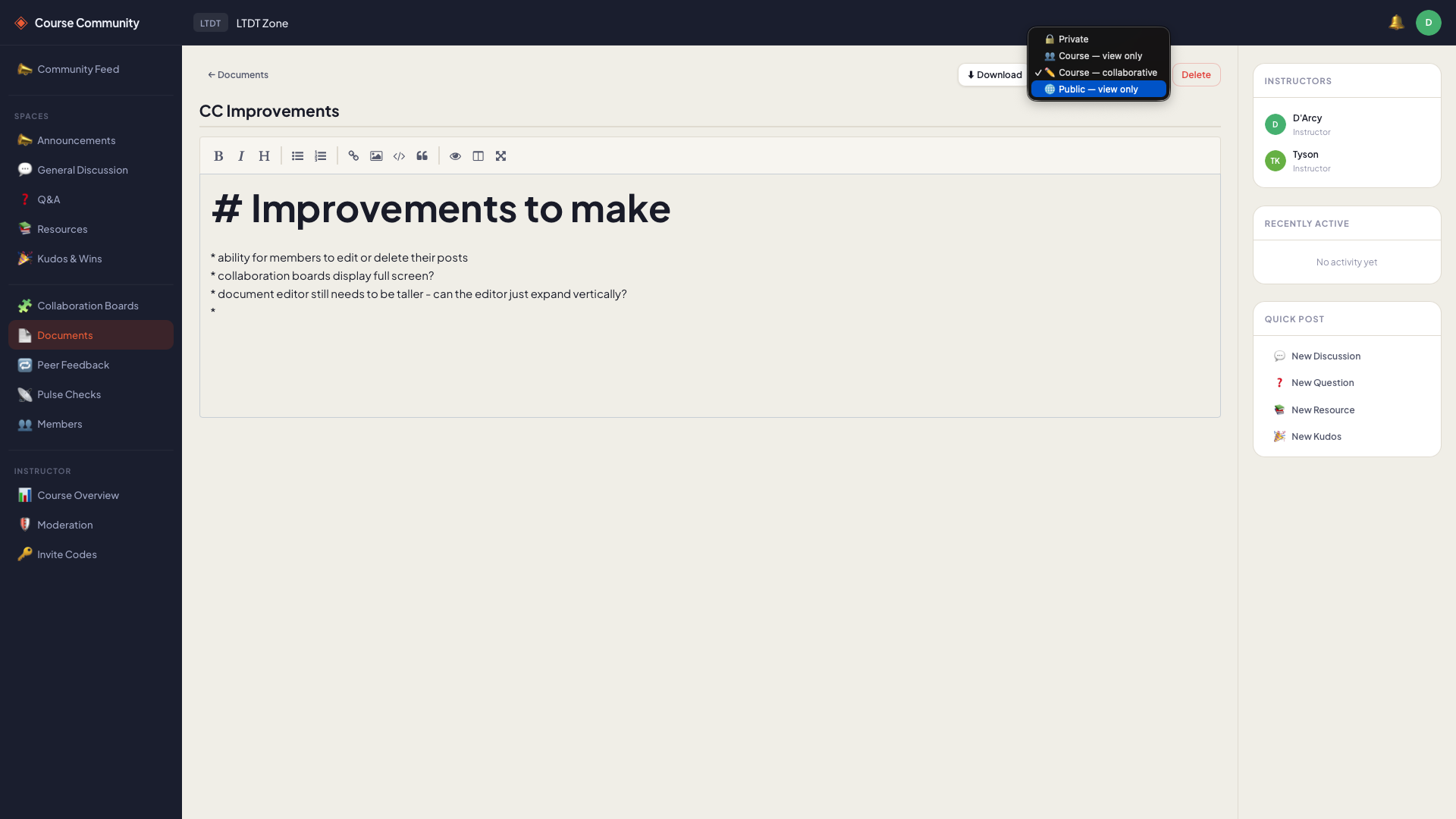- I came back to an idea I’ve had for a few years now - something that I started to figure out back when I was working on my dissertation - of how I would design a “Course Community” platform. Not an LMS. And, although it was out of reach waaaay back in the olden days of 2023, it might just be feasible now