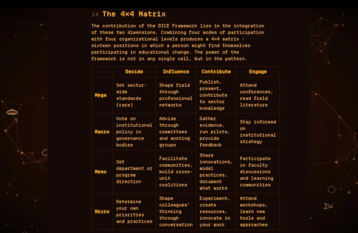 rolling the diceMarch 23, 2026screenshotframeworksDICErolling the diceScreenshot of a the 4x4 matrix table of a blog post about the DICE framework.Photo by D'Arcy Norman