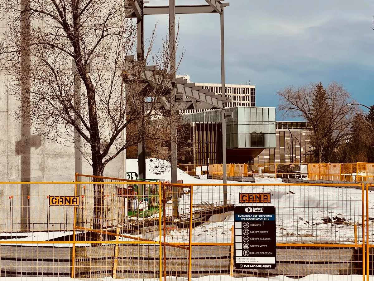 constructing taylorsMarch 27, 2026constructionarchitectureindustrialwinterucalgaryconstructing taylorsAn active construction site with modern buildings under development, surrounded by orange safety fencing and bare winter trees. A United Rentals safety signage is prominently displayed at the site entrance.Photo by D'Arcy Norman