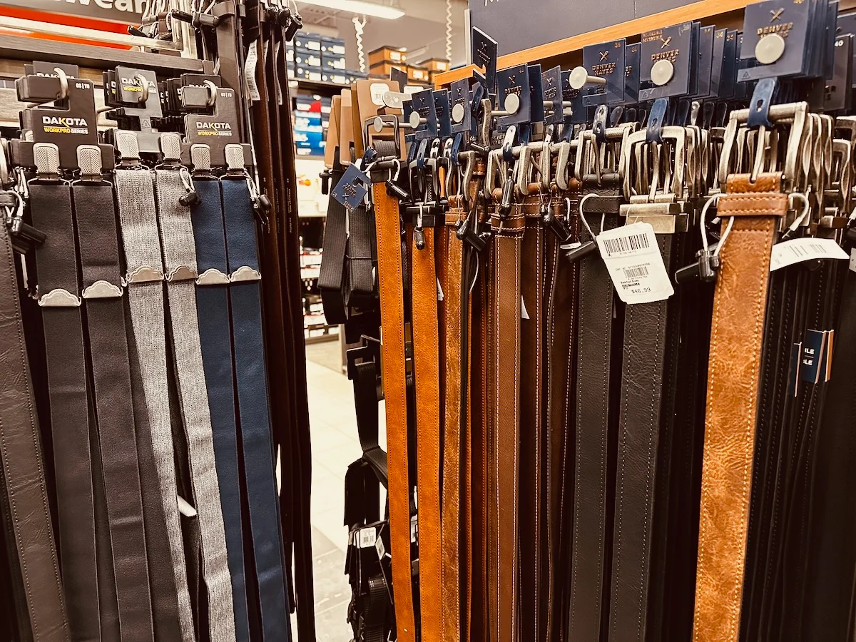 downsizingApril 1, 2026shoppingleatherstoredownsizingA retail display of men's belts in various colors and materials, including leather and fabric options, organized on display stands in what appears to be a department store with Dakota brand signage visible.Photo by D'Arcy Norman